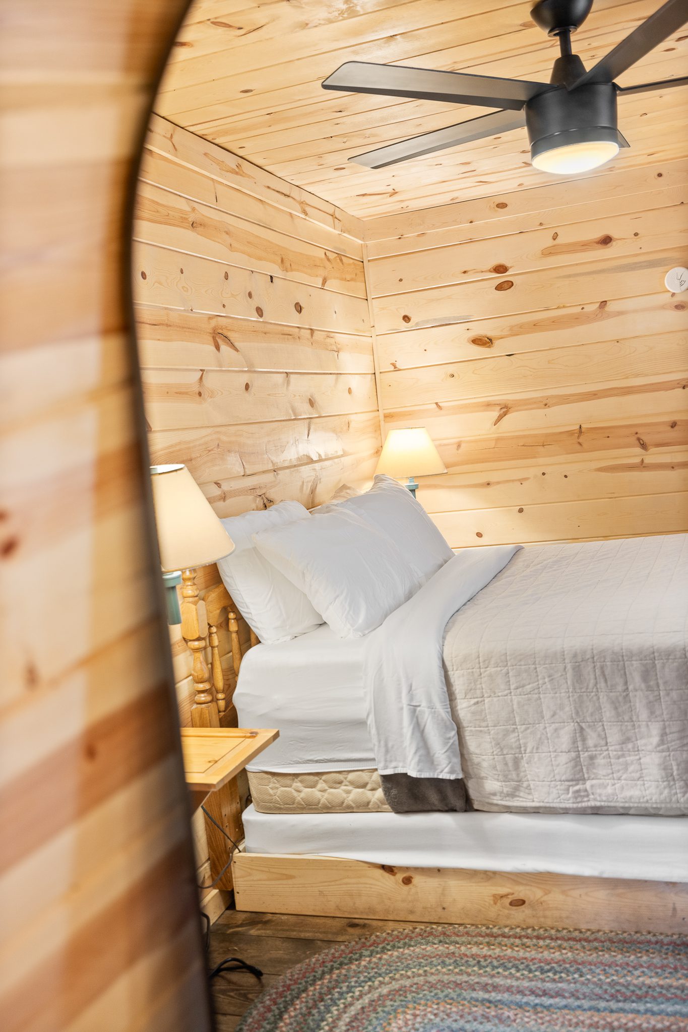 Experience the perfect blend of cozy comfort and thoughtful amenities at the Miner’s Cabin. This charming retreat features 1 bedroom with a queen-sized bed and a bathroom complete with a walk-in shower.