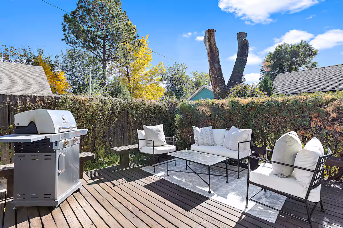 A lovely outdoor deck with grill and back yard play structure creates a great opportunity for fun, conversation, and relaxing. By playing on the play structure you do so at your own risk and release lability of home owner.