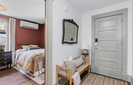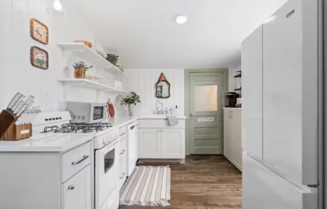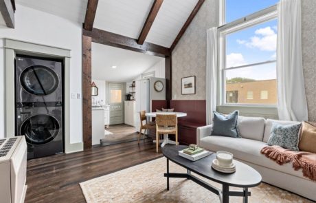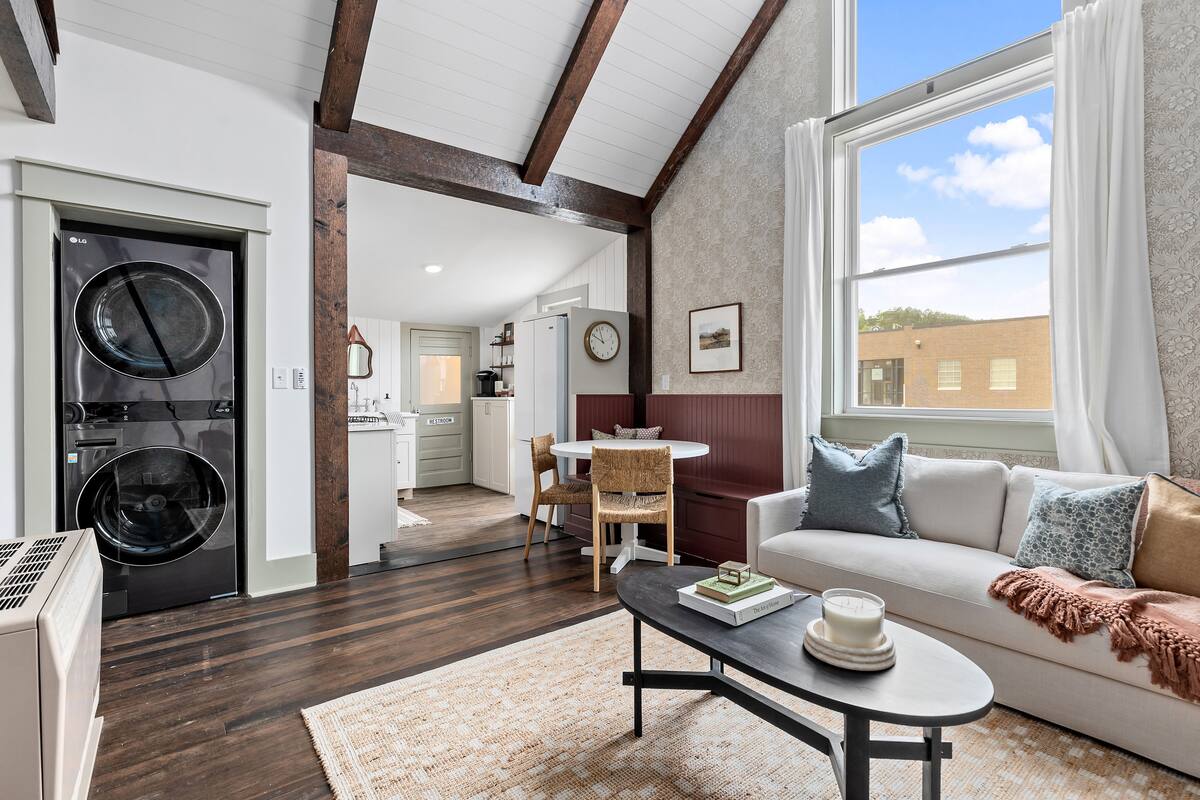The chef’s kitchen is open concept and fully equipped with HexClad cookware, baking sheets, utensils, dishes – everything to make your own meals at home. A Keurig coffee machine greets you in the morning with plenty of coffee pods and creamer. If you prefer going out for coffee simply take a stroll downtown to Harriet and Oak for an amazing espresso.